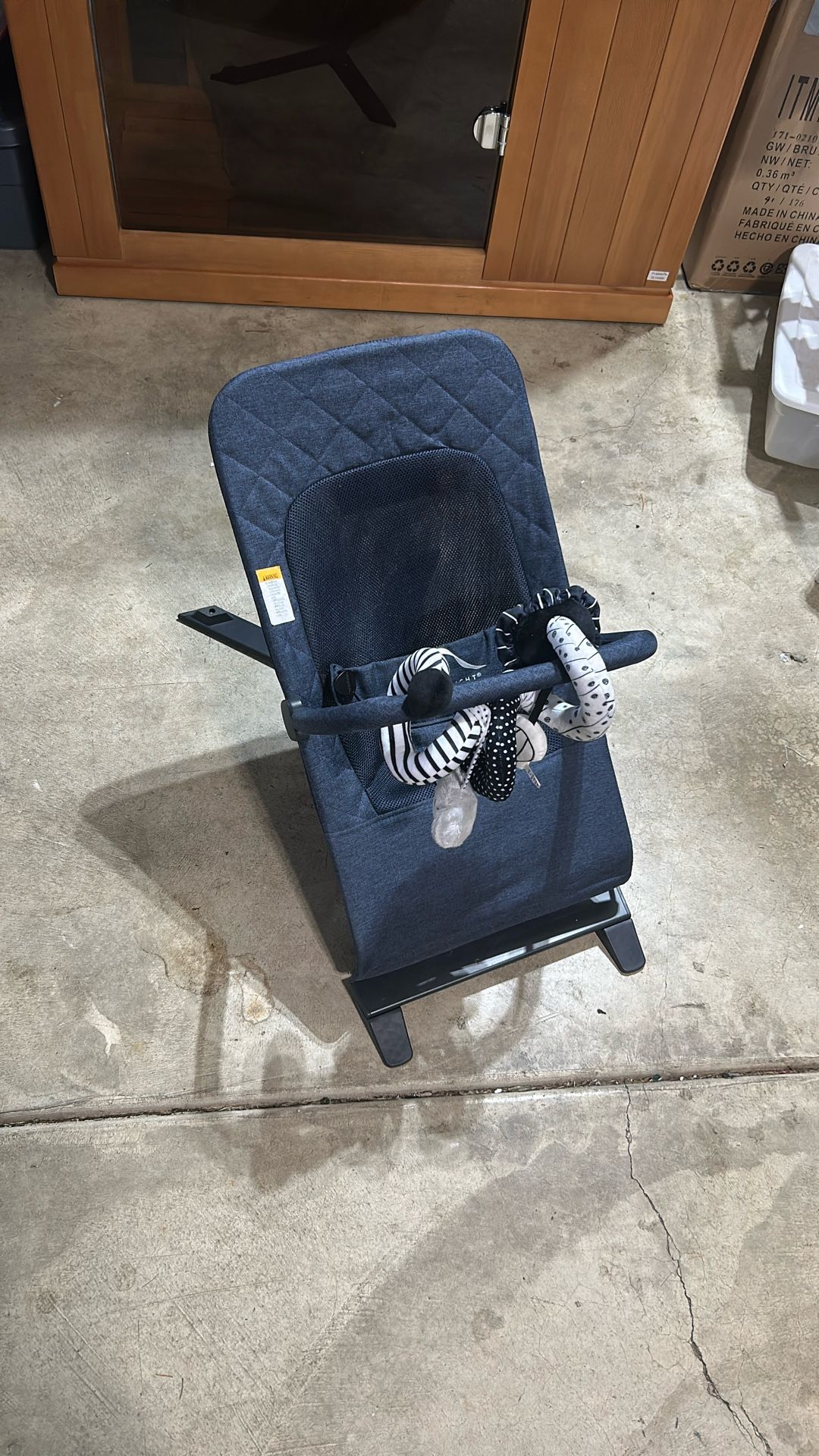 Baby bouncer, minimal use, like new. Includes a storage bag.