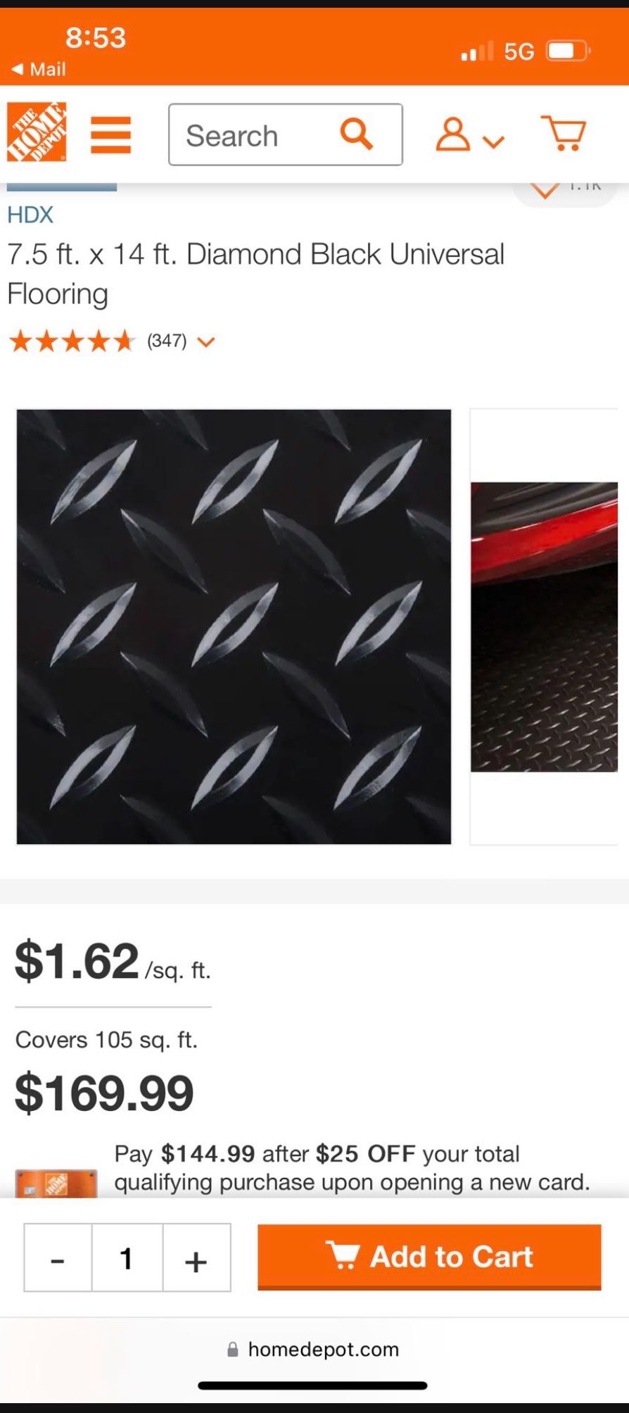 7.5 ft. x 14 ft. Diamond Black Universal Flooring $100 each roll 5 available Take all 85 each