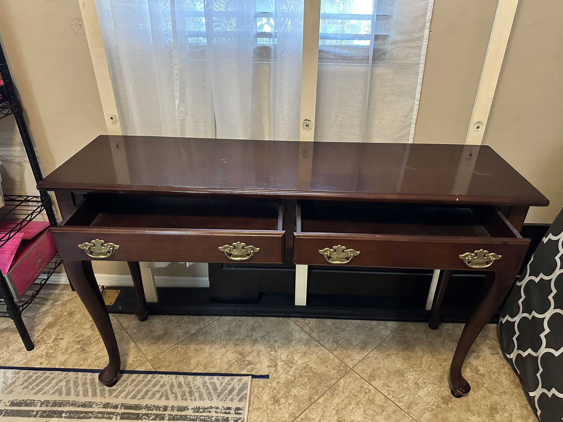 Used good condition looks really pretty Pick up at van buren and estrella Console table very beautiful Heavy and solid Sparingly used no pets and smoke free house 47 Lx W14x H 30