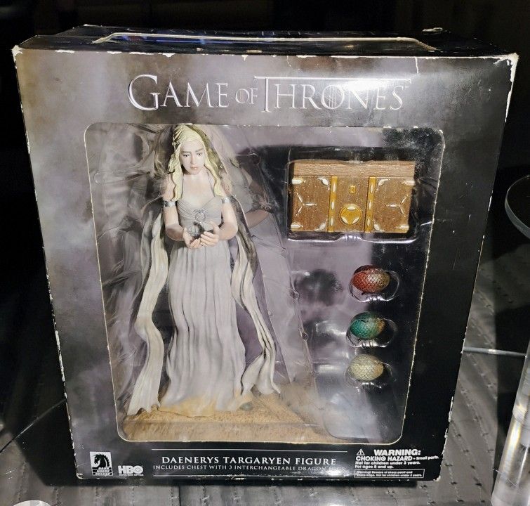 GAME OF THRONES DAENERYS TARGARYEN STATUE FIGURE & CHEST W/ 3 INTERCHANGEABLE DINOSAUR EGGS! **NEW IN BOX... NEVER BEEN OPENED!... THERE IS SOME MINOR SCRATCHES ON THE OUTSIDE OF THE BOX FROM BEING STORED AWAY! ( PLEASE SEE ATTACHED PHOTOS ) ** ALL SALES FINAL, NO RETURNS ** ** PAYPAL OR CASH ONLY! ** **FREE LOCAL PICKUP ** ** DELIVERY AVAILABLE AT CUSTOMERS COST! **