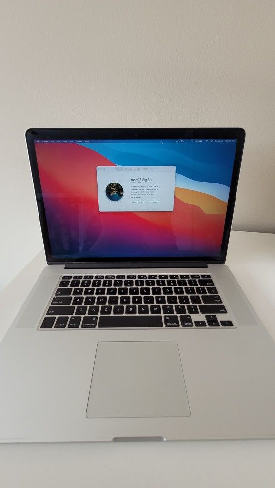 Running in very good condition. Light wear and scratches under the laptop. Retina display 15.4" 2880x1800 resolution 2.6GHz quad-core Intel Core i7 CPU. 16GB of memory. 500GB of storage. MagSafe 2 power port for safe charging Less than 500 battery cycles.