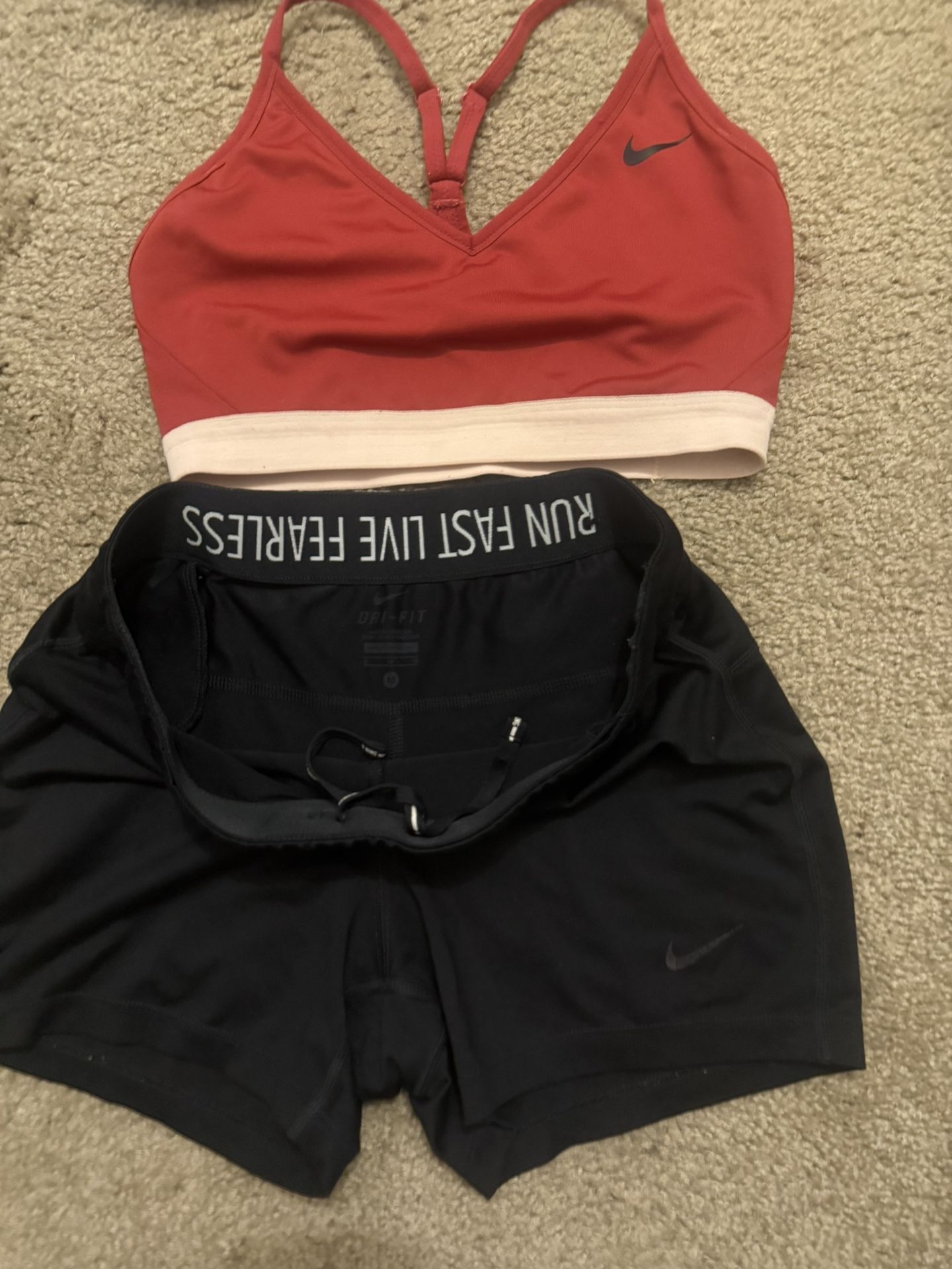 Women’s medium Nike dry fit Sports bra Shorts “Nike running” with little mini zipper pocket Like new condition 25 OBO
