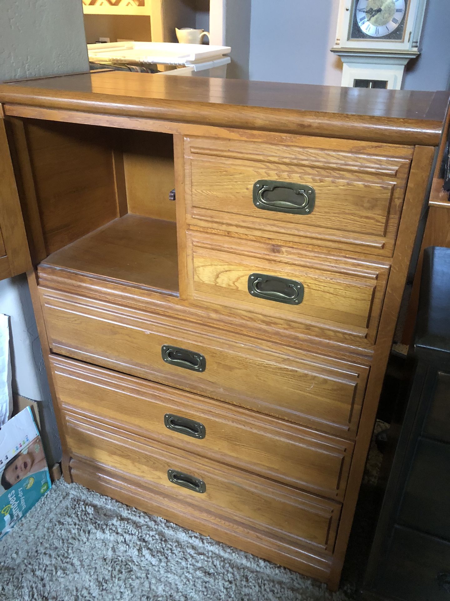 Dresser with open area and 5 drawers