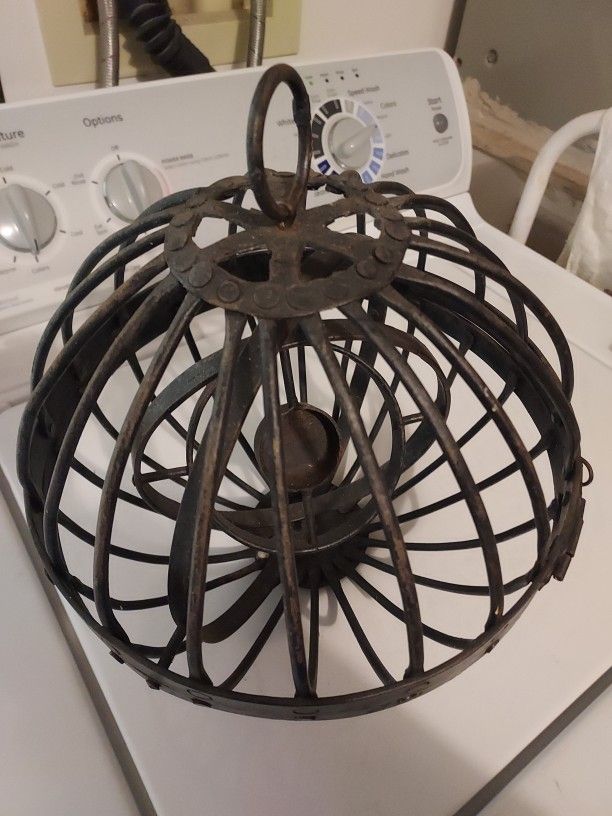 Decorative. Hangs ( look for the hook). It locks with a special key. It holds a candle in the middle.