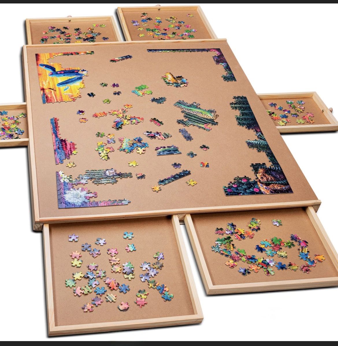 Puzzle Board, 1500pc Becko brand 36”x 25” New Pop out drawers, felt lined. Nice for storing under a sofa or bed