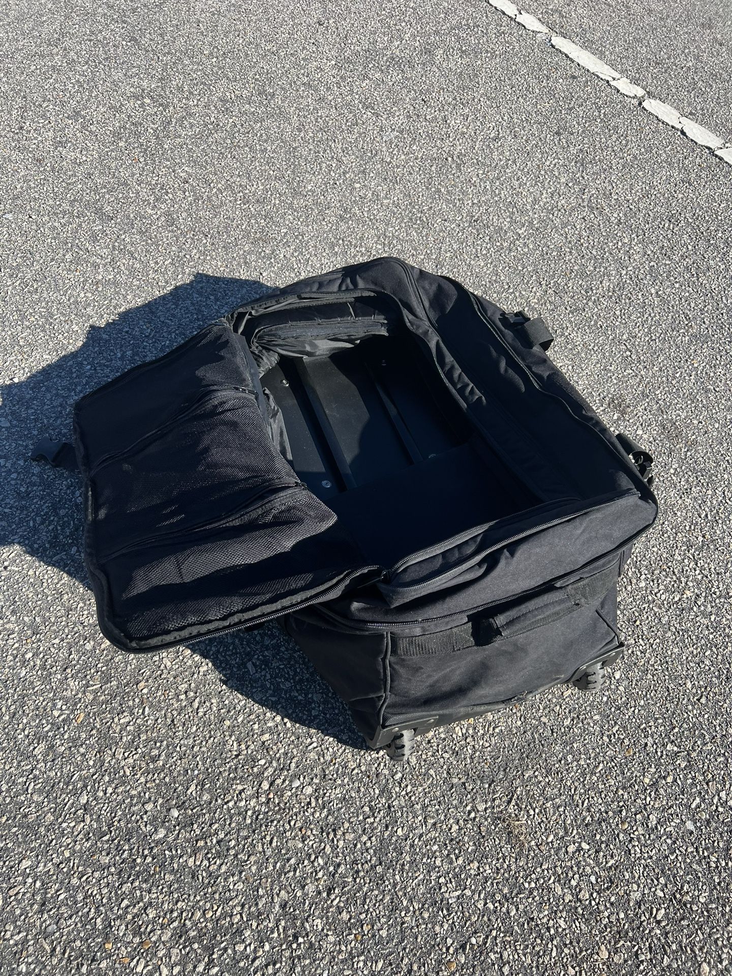Used condition, it rolls freely, zippers zip smoothly. Cash only pick up on base