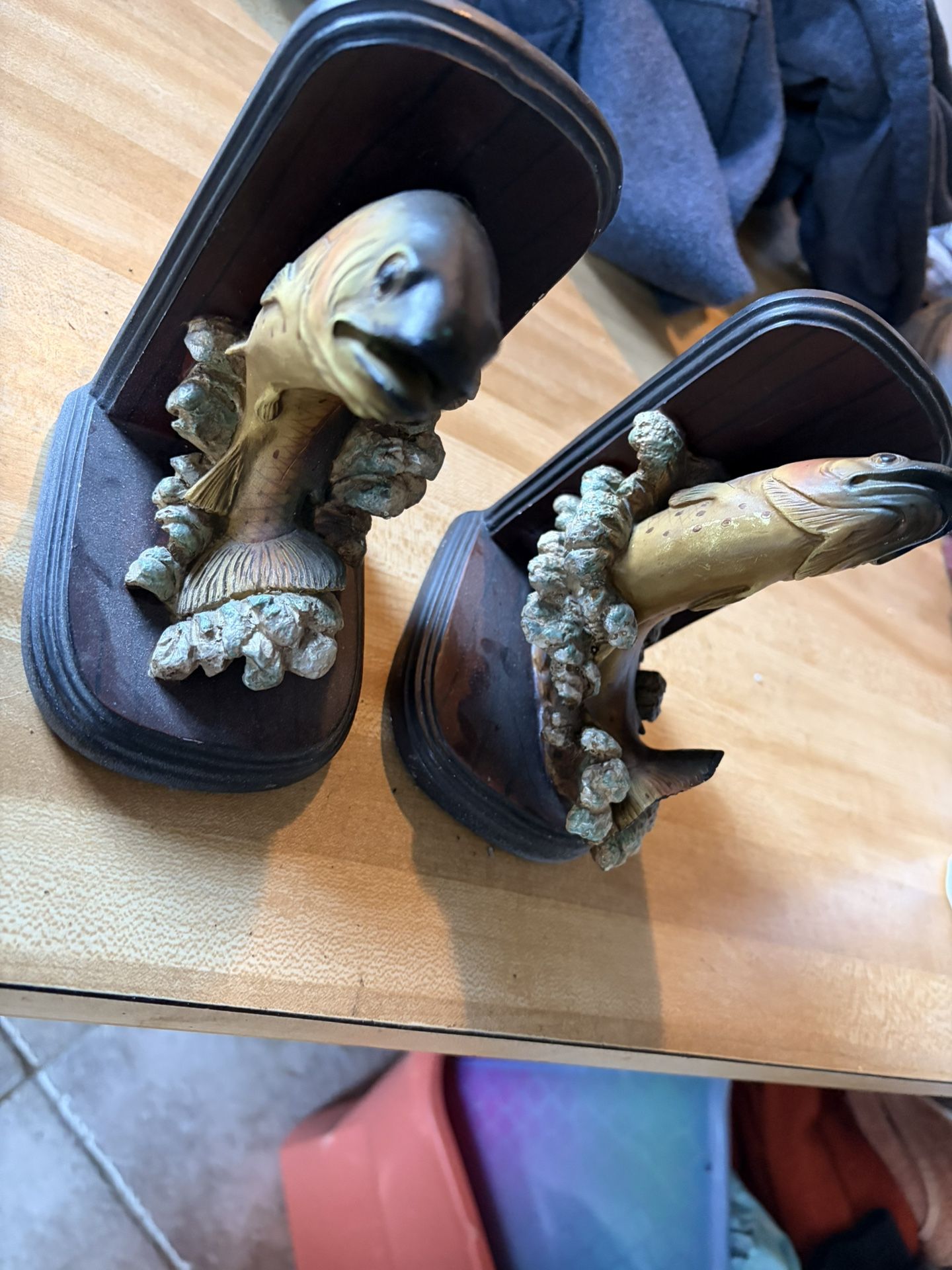 Decorative fish wall plaques, resin/composite with wood-style backing. Great for cabin, man cave, garage, or fishing-themed décor. Good used condition. Selling as a matching pair.