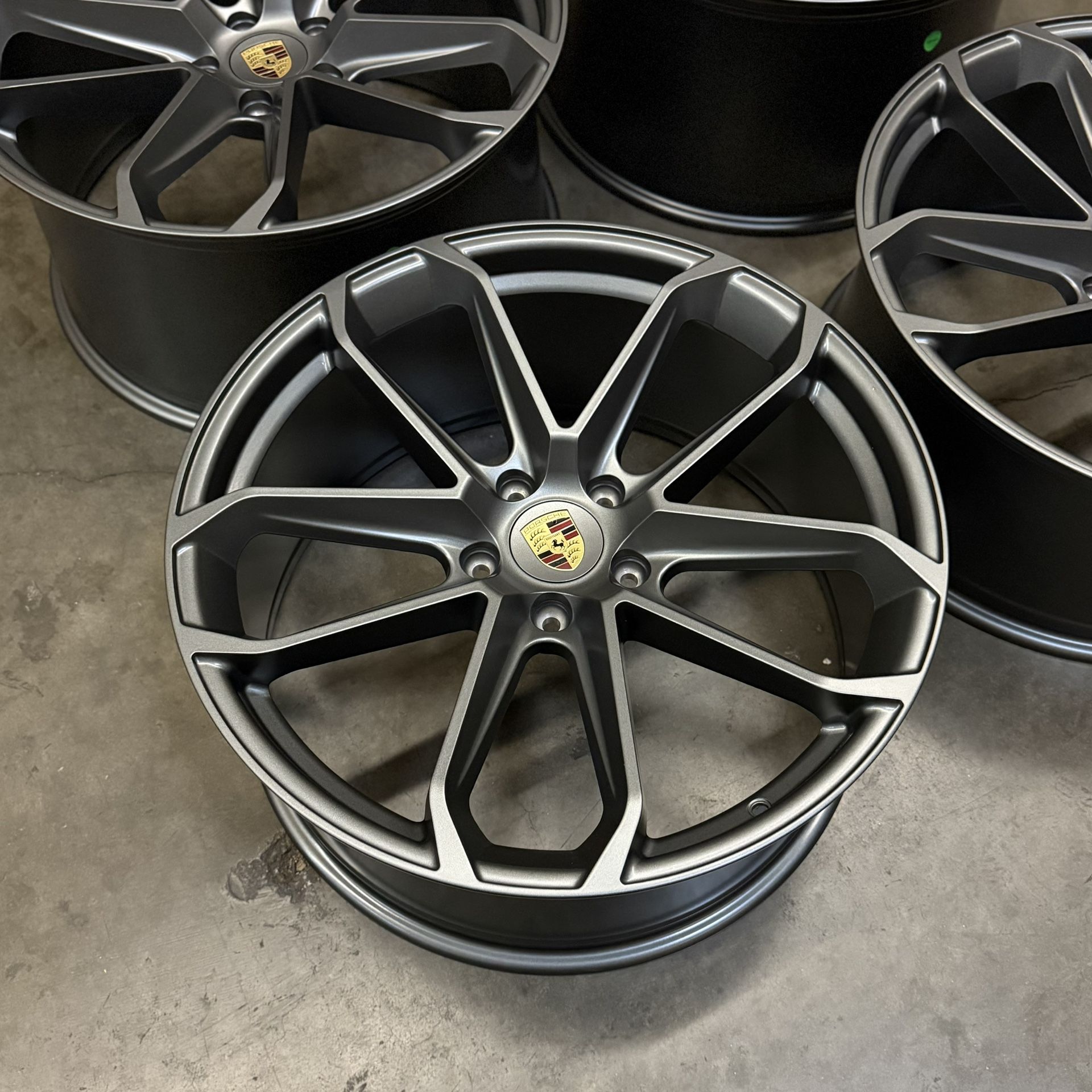22" STAGGERED Satin Gray Wheels Rims Fits Porsche Cayenne Panamera GTS TURBO S 22x10/11.5 (5x130) Brand New In Box Front: 22x10 +45 Rear: 22x11.5 +61 Bolt Pattern: 5x130 Center Bore: 71.6mm FITS 2018+ Models Base / S / GTS / Turbo S Cayenne Panamera Please message me if you have any questions.. S204f/r