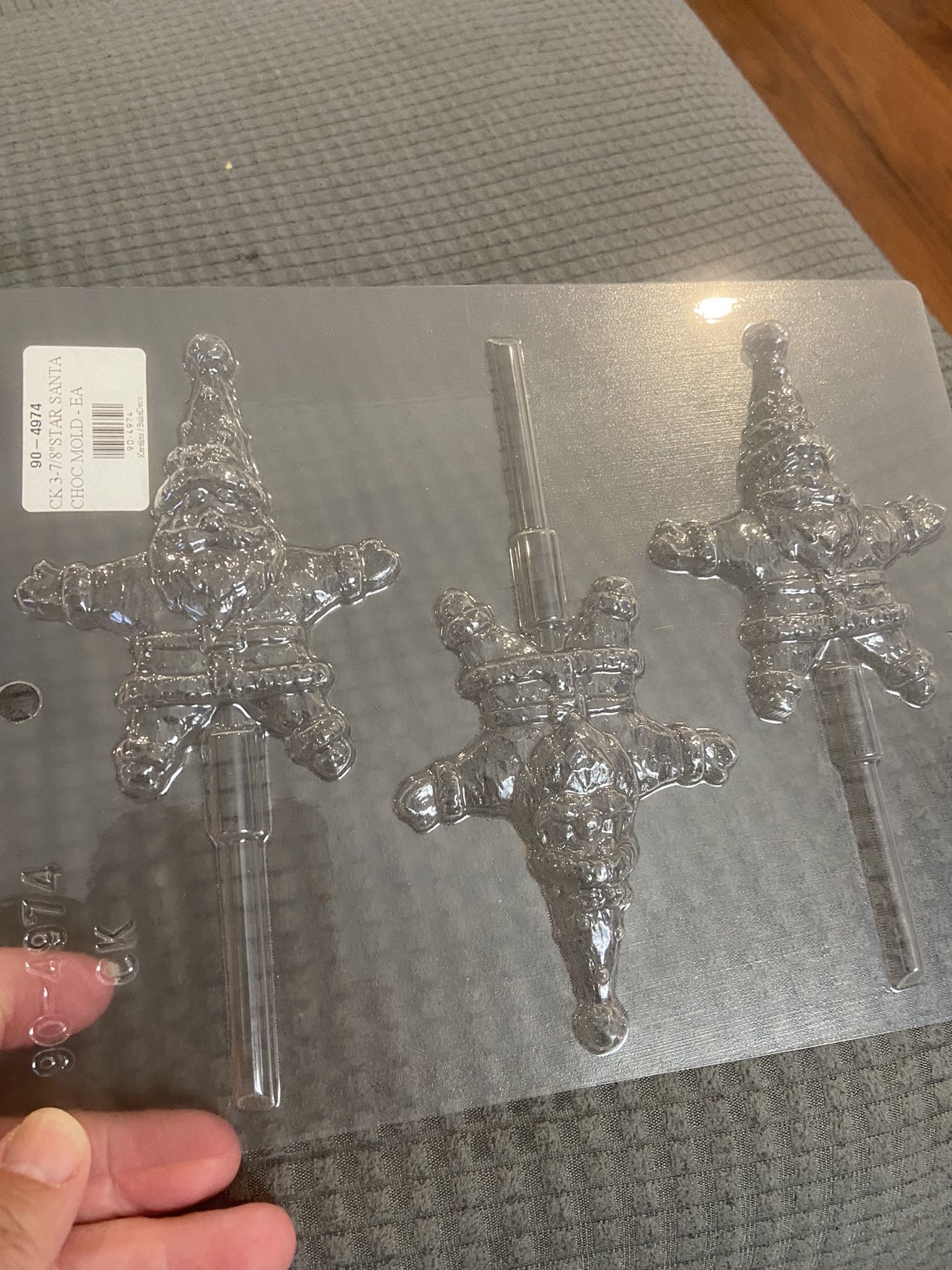 New never used I have two molds they are $5 each Santa sucker/lollipop chocolate mold Great for Christmas parties or classroom treats Reusable Easy to clean I have many chocolate molds listed check out my other listings Pick up in Covina or I can ship.