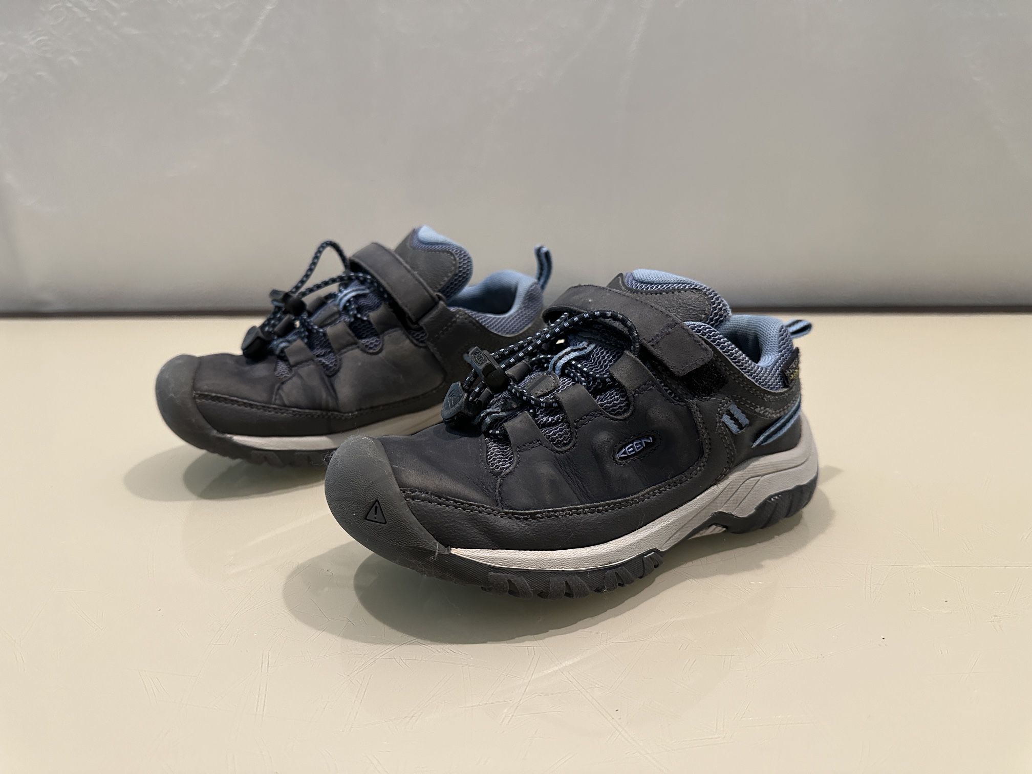 Keen Kids Waterproof Hiking Boots (Dark Gray & Light Blue, Size 12)