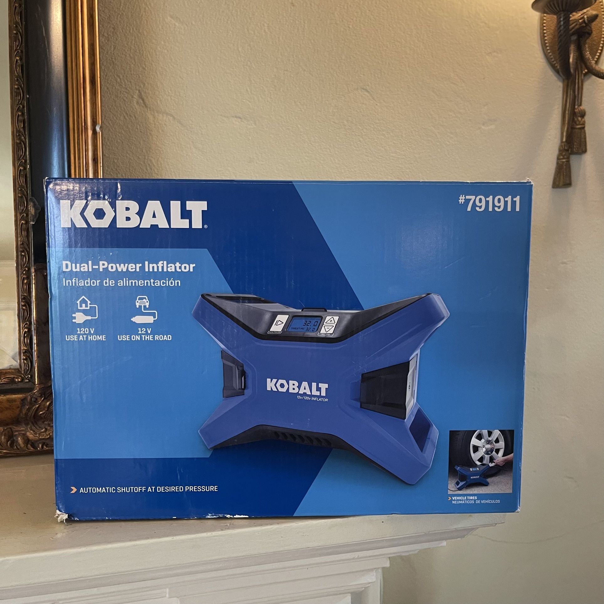 New In Box Kobalt Dual-Power Inflator, still in original box. This versatile inflator can be powered both at home and on the road, making it ideal for everyday drivers, road trips, and emergency kits. Designed for convenience and accuracy, it features a digital display and automatic shut-off so you can set your desired PSI and walk away without worrying about over-inflation. Vehicle tires Bikes Sports equipment Everyday garage or trunk use Dual power: 120V (home outlet) & 12V (vehicle plug) Digital PSI display Automatic shut-off at desired pressure Compact, sturdy design Trusted Kobalt quality New, unused, in original packaging Condition New in box. Never used. You’re welcome to try it before purchasing. Yes, it’s still available if the listing is up. Se habla español. Easy access no stairs. 📸 Photos are part of the description- so zoom in and take a good look at all images for details. 🛍️Check out my other listings for great finds at fair prices. ⏳ Priority goes to whoever pays or picks up first. I’m unable to hold items unless a deposit is made. 🚛 Curbside Delivery (no stairs)available for an additional fee— price depends on your location.