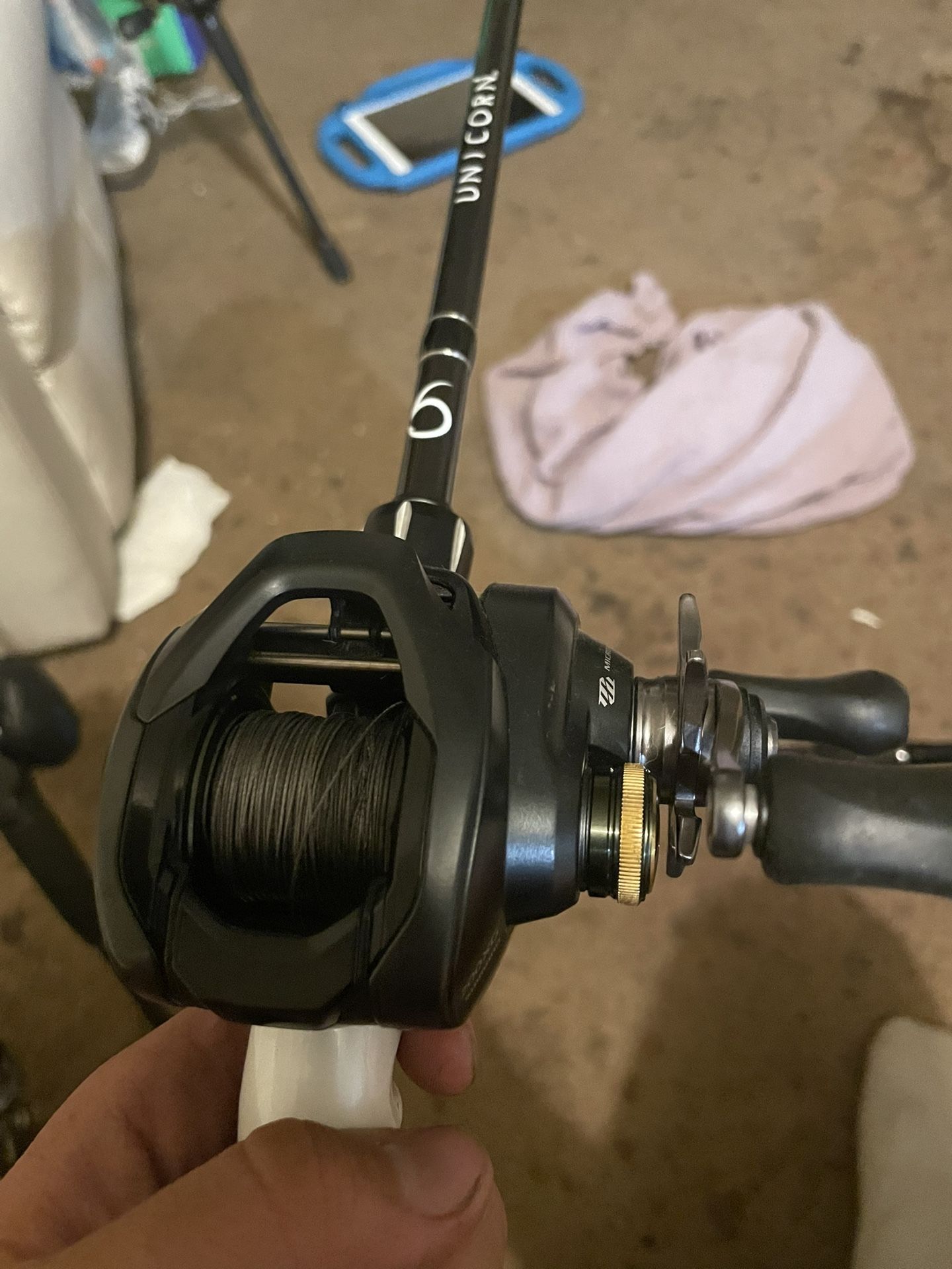 Brand new barely used Took it out like 3 times but never liked it Punching setup or stripper setup Curado 200xg -250 6th sence unicorn - 250 $500 for the whole setup