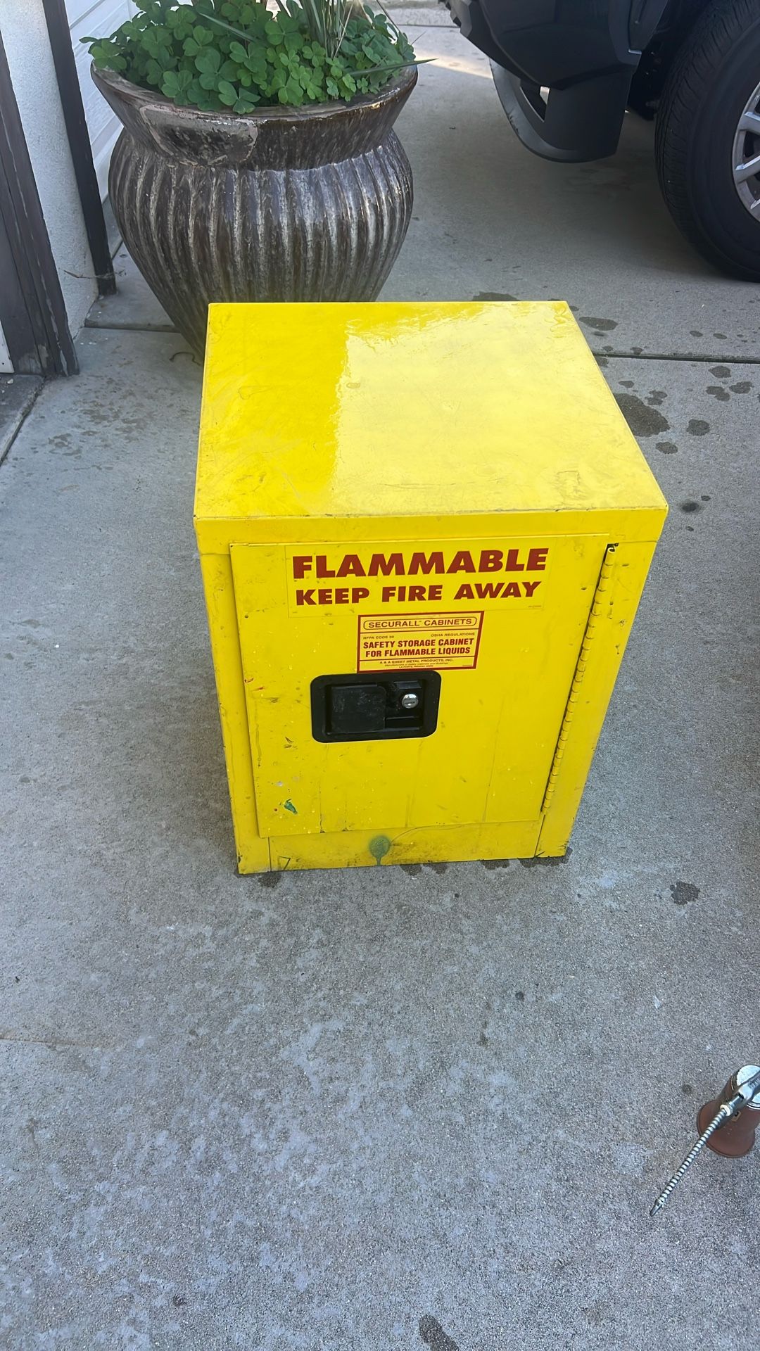 Like new Safety storage cabinet For paint or chemical Cap. 5 Gallon See the pics Excellent Has lock but no key