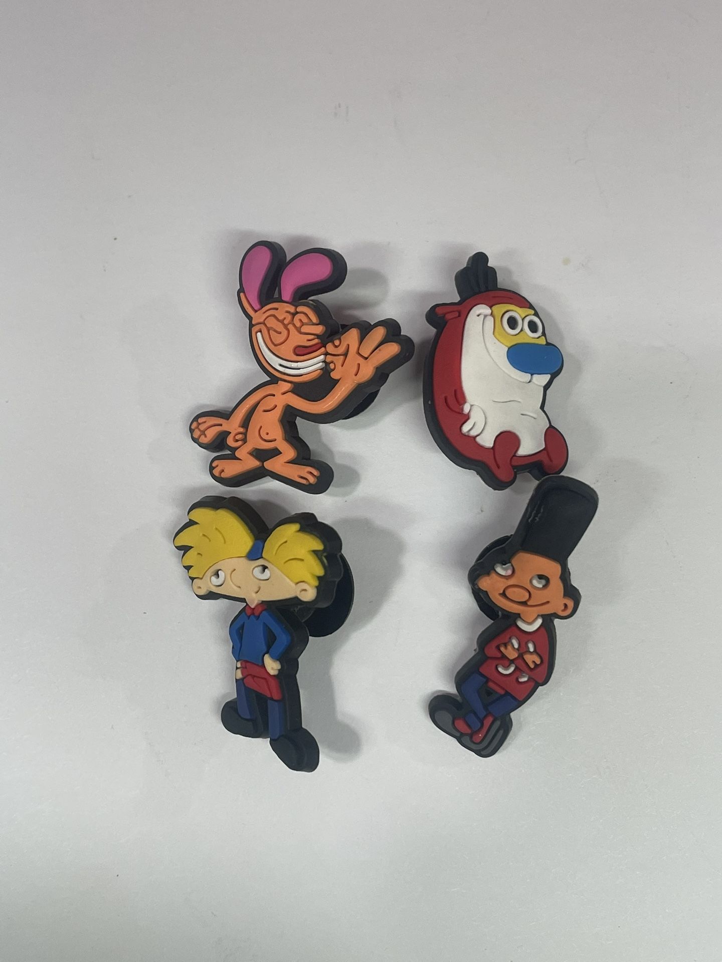 Four vintage Nickelodeon croc shoe charms includes ren and stempy (from ren and stempy) and Gerald / Arnold (from hey Arnold)