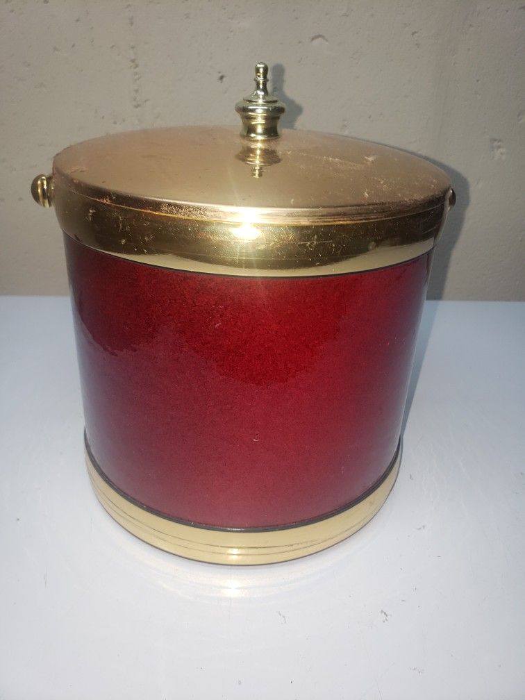 Vintage MCM maroon kraftware ice bucket , fair condition for age, see scratches and rust spots in pictures