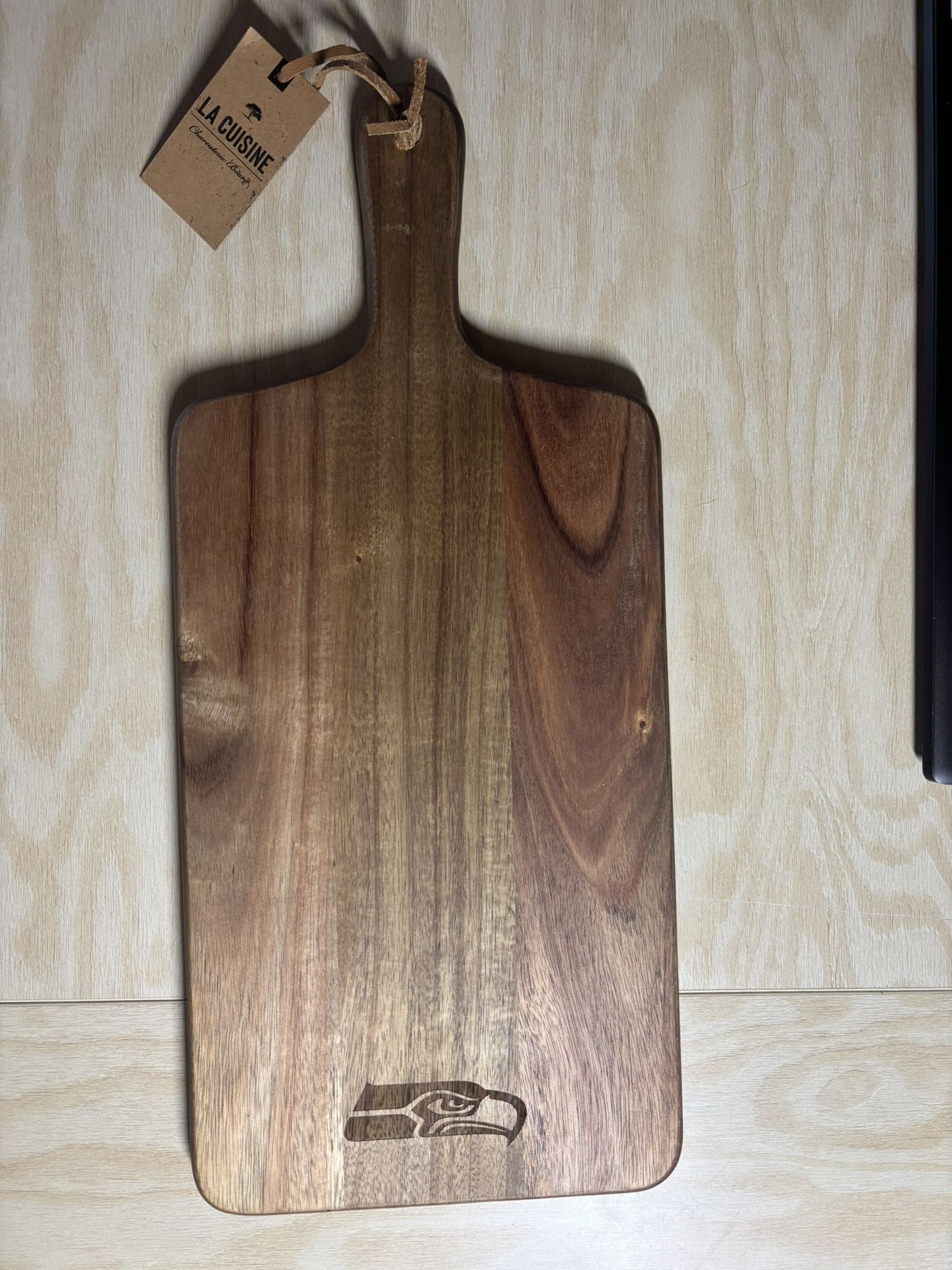 12” x 7.25” charcuterie board by La Cuisine with a Seahawks logo