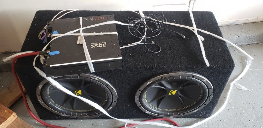 Boss audio amplifier 1500 watt with 2 kicker woofers. Complete setup. Can install . 450$