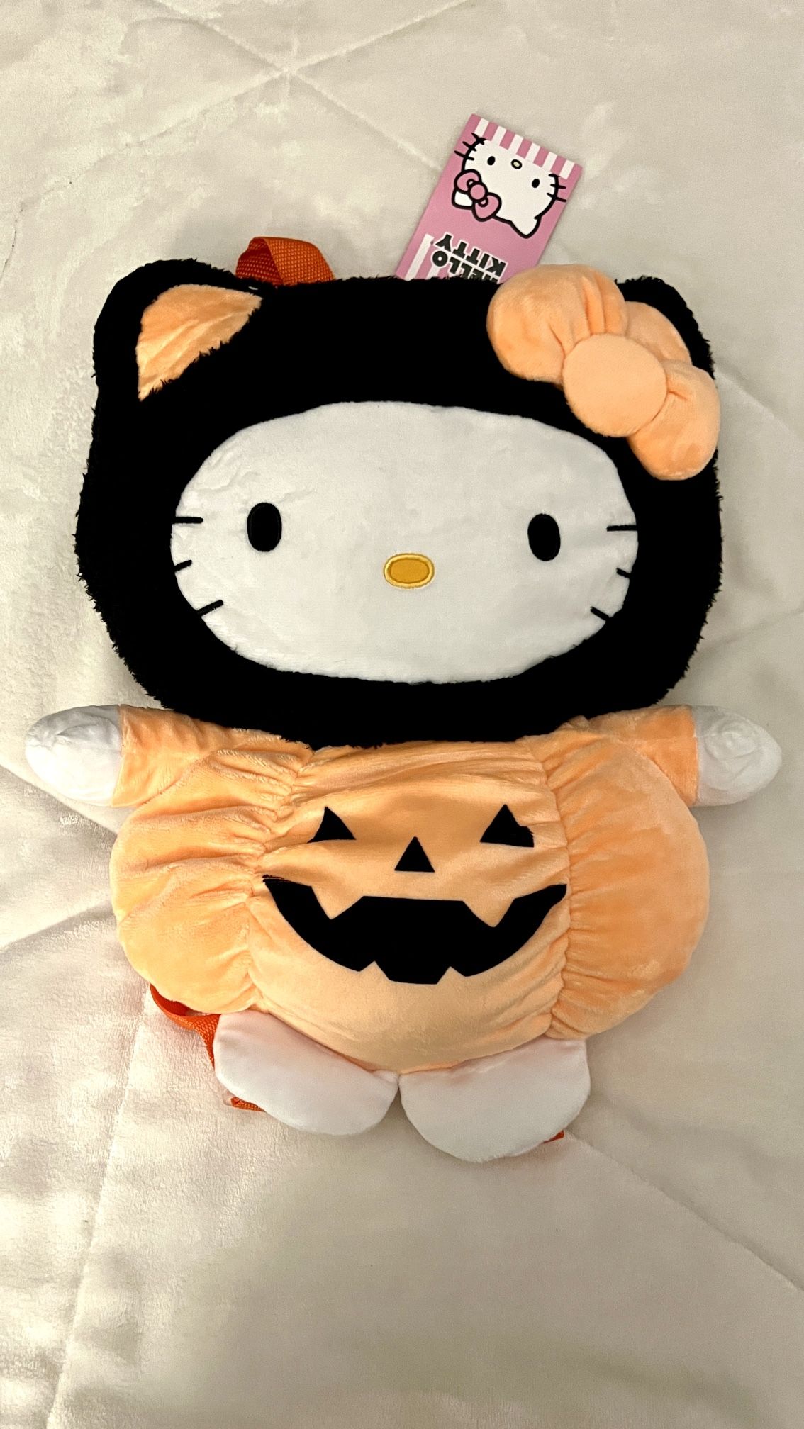 Hello Kitty Halloween bag has a back zipper in her head for storage $38