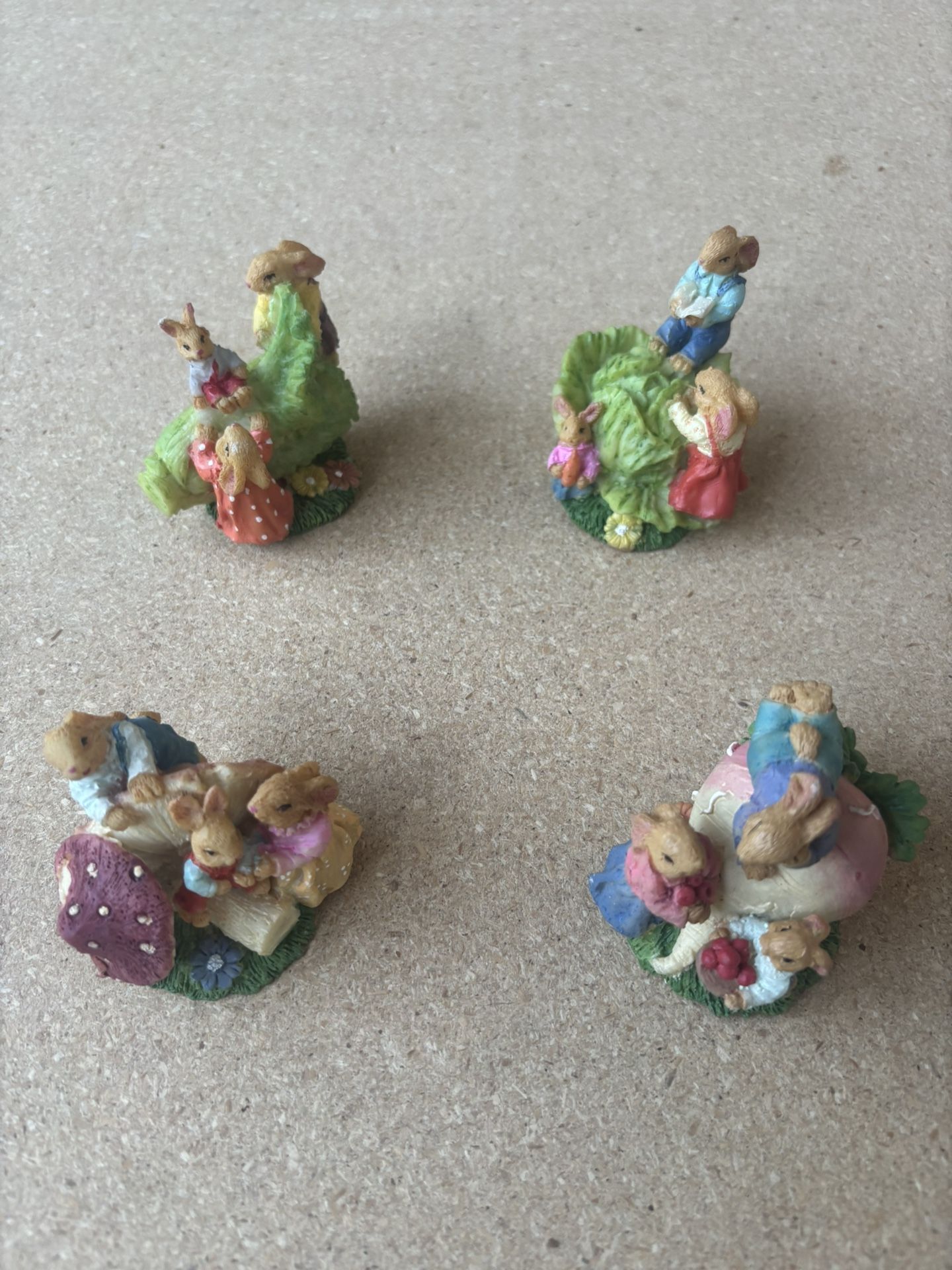 $20 for 4 Peter Rabbits Decors dimensions - W: 2.5 in. H: 2.5 in. D: 2.25 in.