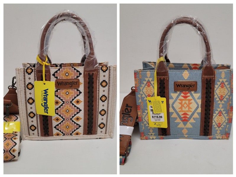New with tags women's Wrangler western aztec handbags with detachable straps. Color beige and blue. $30 EACH **Located northside Jax near the airport**