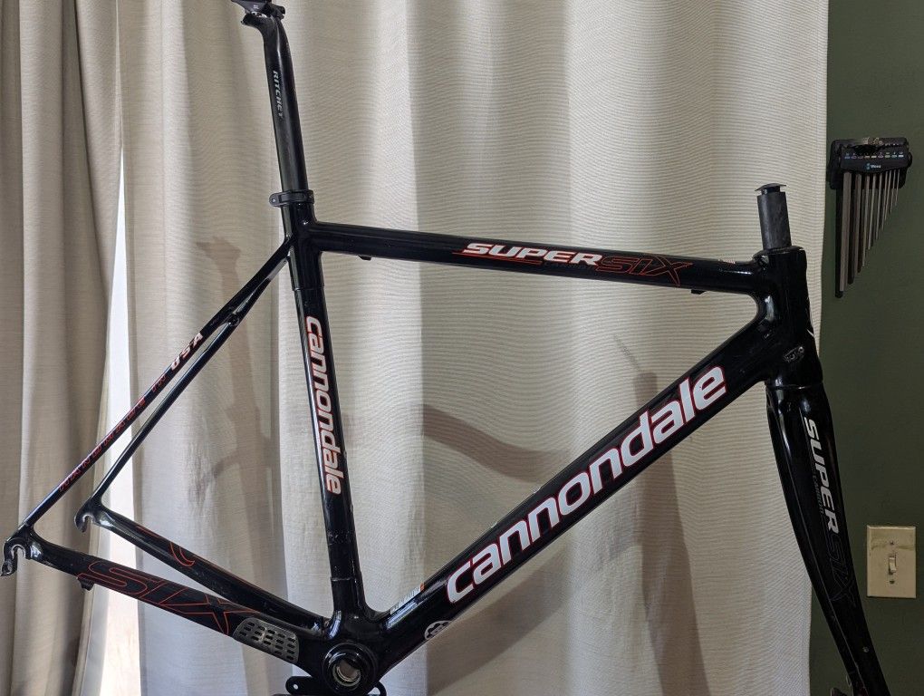 Cannondale super six rim brake. Comes with ultra torque bb installed and a Ritchey carbon seatpost. Fair amount of paint chips but otherwise in good shape. No cracks Size 54. Have hunt 50mm carbon wheels to pair with it if desired.