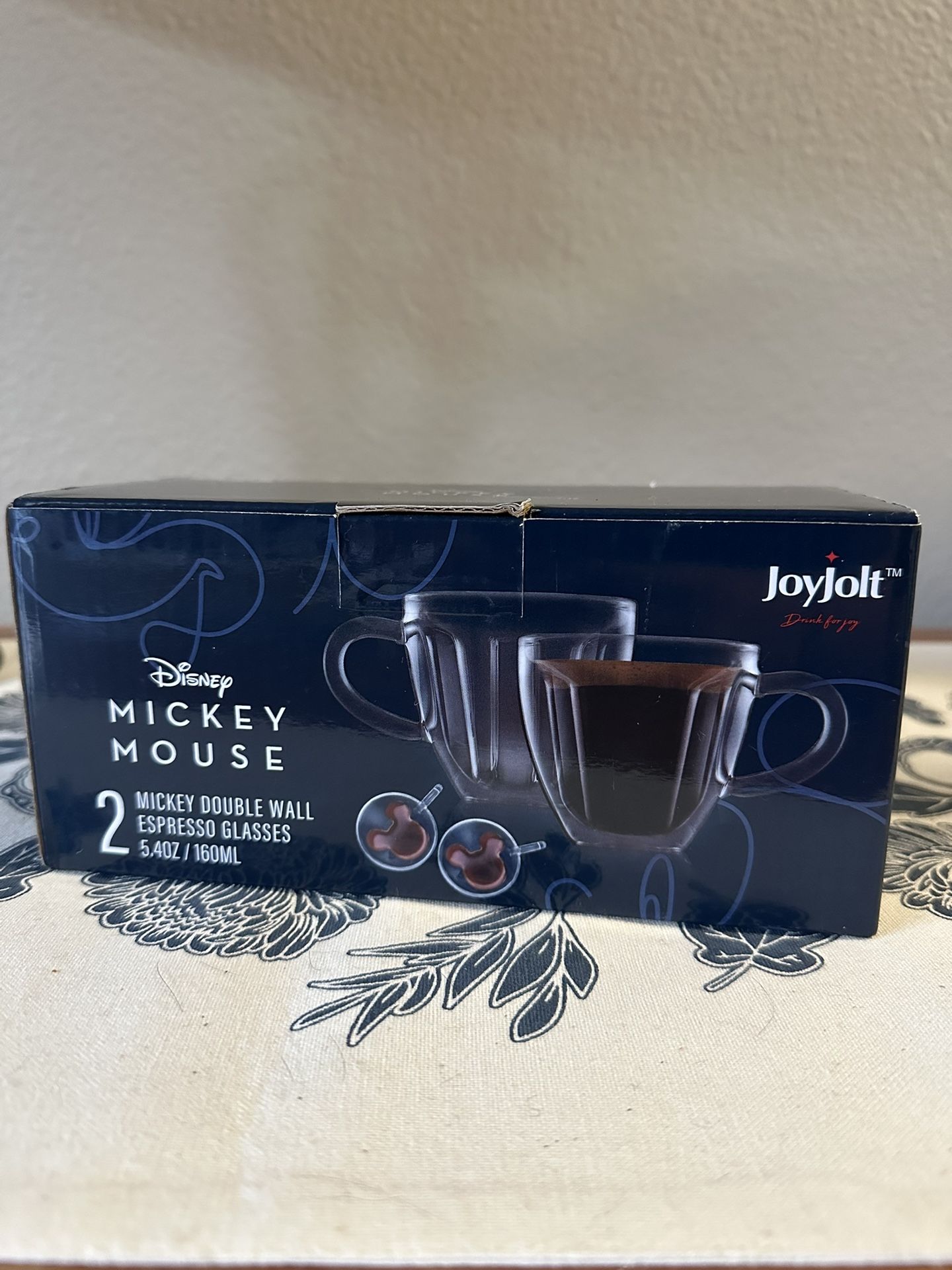 Mickey's joining your morning ritual! Our Disney Mickey Mouse espresso cup set is a 3D celebration of everyone's favorite mouse. Crafted with double-wall magic, these glass mugs keep your espresso hot and your hands cool – because mornings with Mickey are always delightful! Set of 2 Espresso Cups Capacity: 5.4 oz Double-Wall Insulated Glasses Lead-Free Borosilicate Glass Dishwasher, Microwave, and Freezer Safe