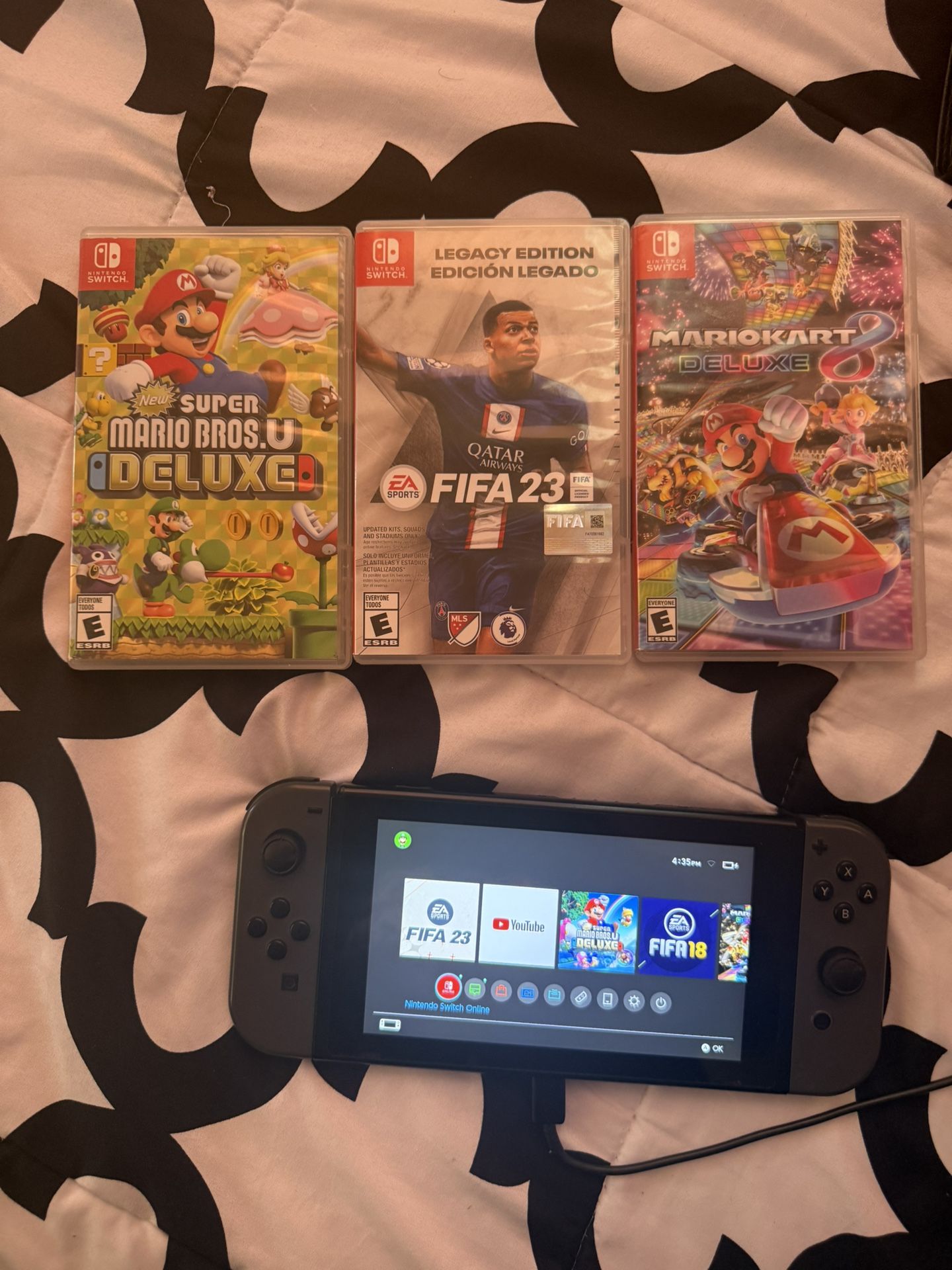 Nintendo Switch Comes with Fifa 23, Mario Kart 8 Deluxe and Super Mario Bros Deluxe Needs New JoyCons Console works perfectly