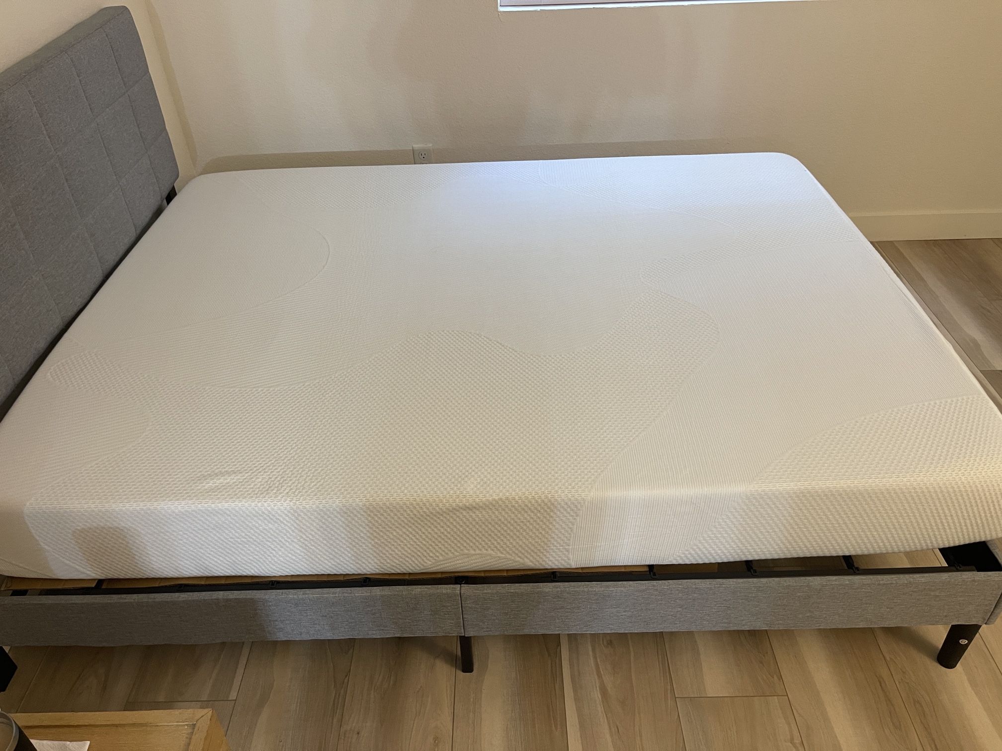 Target brand queen bed frame and memory foam mattress together. Used only six months. Moving across country and need to sell. Henderson Area. New together cost 400 will sell for 100z