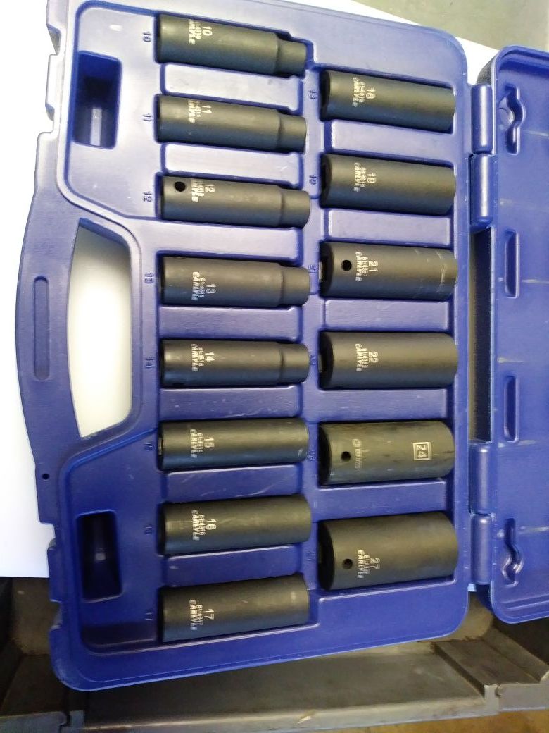 Carlyle 1/2 drive metric impact socket set 10mm-19mm ,21mm,22mm,24mm(kobalt brand) and 27mm.. Never usef but one socket.. Lifetime warranty at NAPA and 24mm at LOWES... $45.00 OR BEST OFFER...