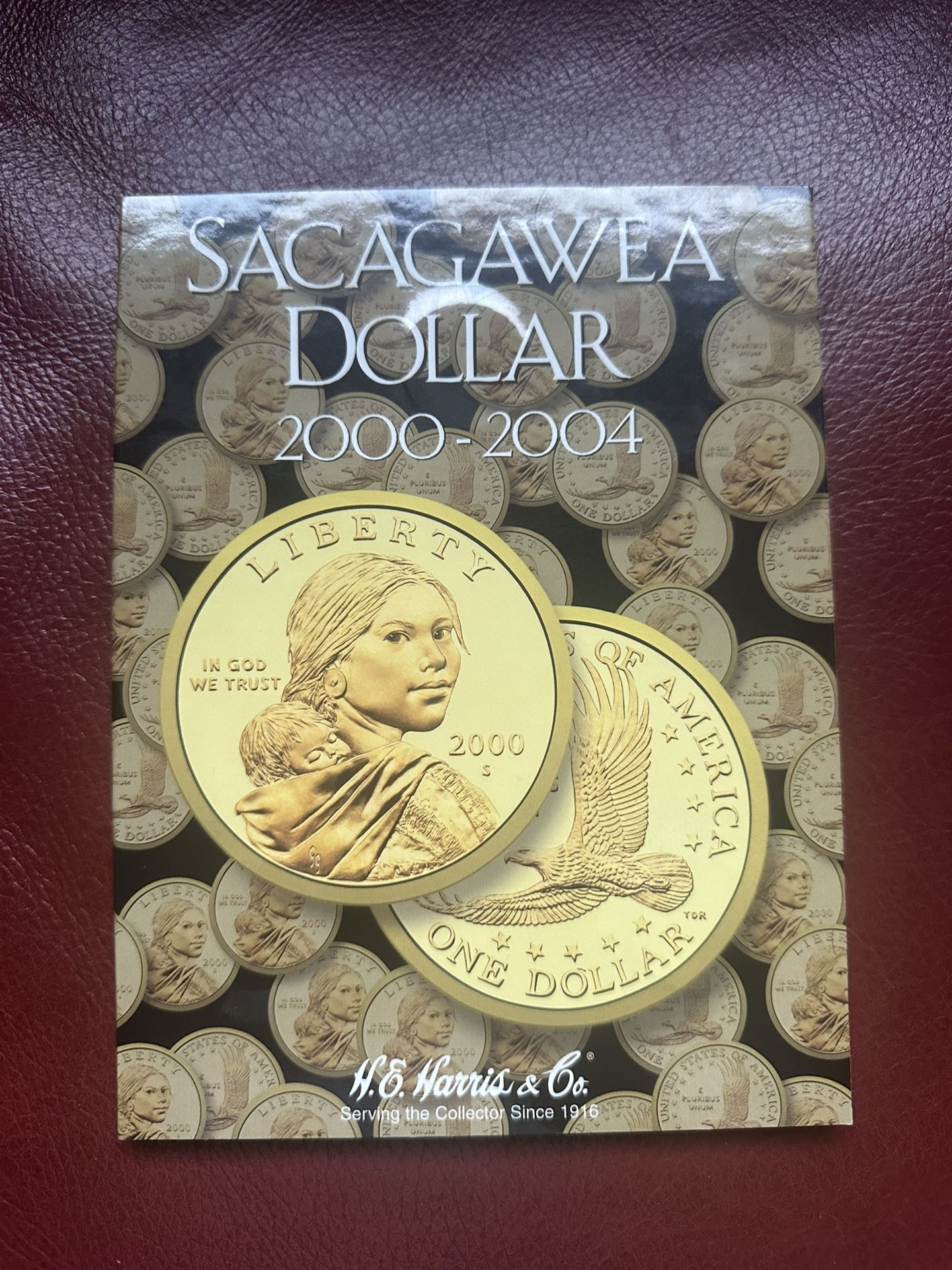 Sacagawea Dollar 2000-2004 Album Book 2715 containing coins from the years 2000 to 2004. Space for 11 coins. 10 Coins included. Missing 2004 (D) This would be a nice addition to a coin collection. PU near Kennewick Walmart