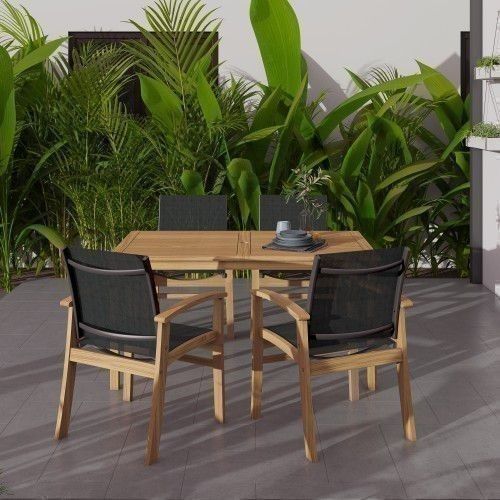 BRAND NEW Rectangular 5 Piece 100% FSC Certified Teak Wood Table And Chairs Dining Set | Ideal Furniture Set for Outdoor
