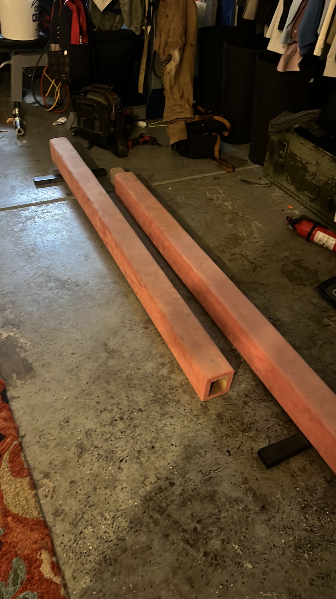 To connecting gymnastics balance beams that run 70 inches across each piece. Good condition for practice, slight rips on the cloth on one of two pieces.