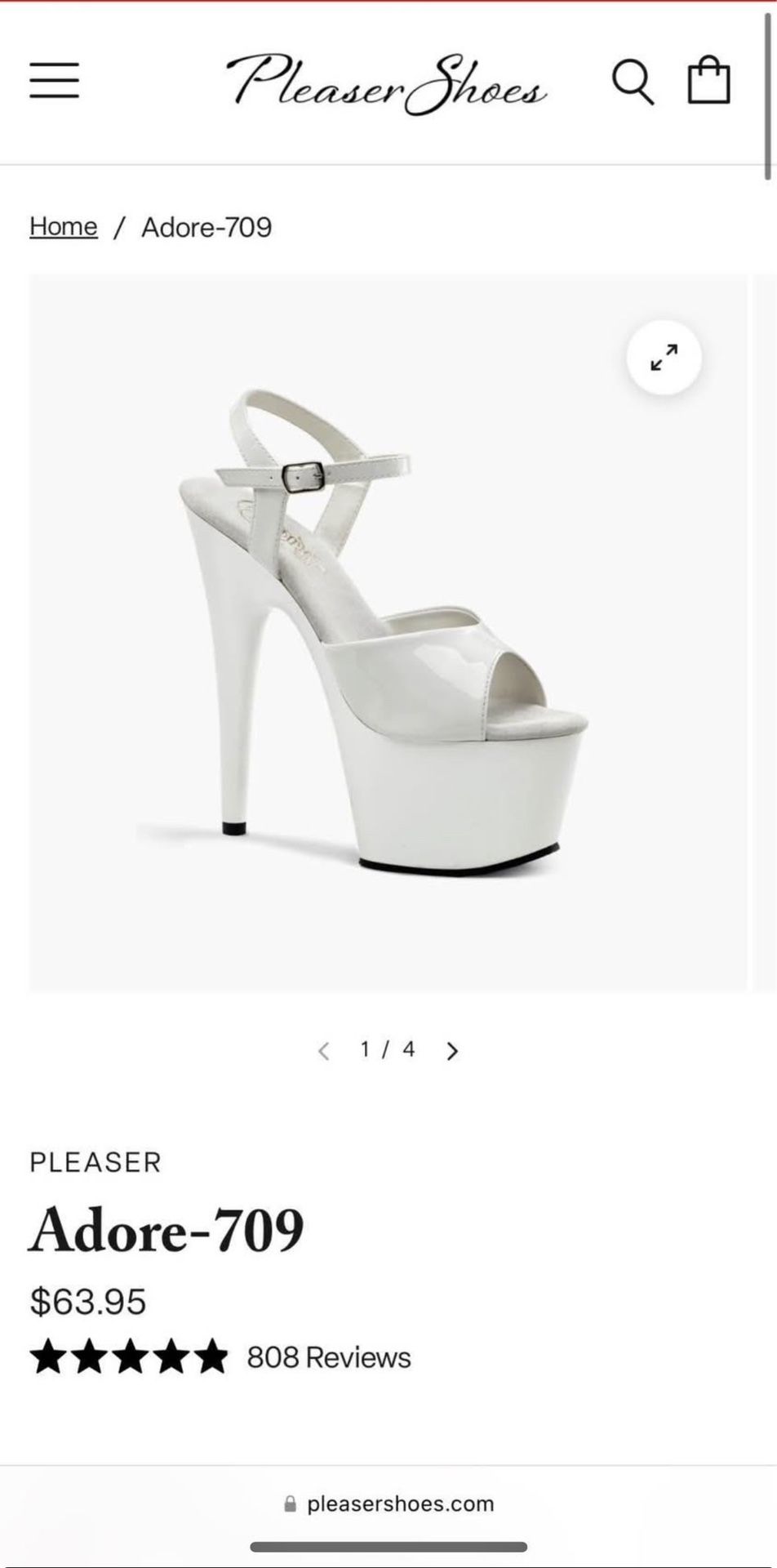 Selling these white Pleaser brand dancer platform shoes/heels called “Adore 709” on the website. Hoping to take $45 for them or best offer as they were originally $63 plus shipping Super sturdy heels and great quality - this brand is the best! Only worn a few times indoors, short amounts of time, and in great condition still! They are slightly too big for me and I like a higher platform usually so I am hoping to sell them Size 9