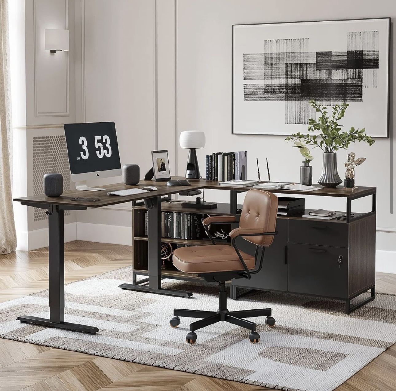 Adjustable L-Shaped Standing Desk with Storage Cabinet