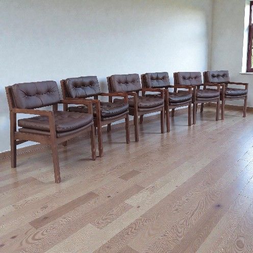 Vintage 1970s Mid-Century Modern Leather Chairs - Murphy-Miller HON (Set of 6)