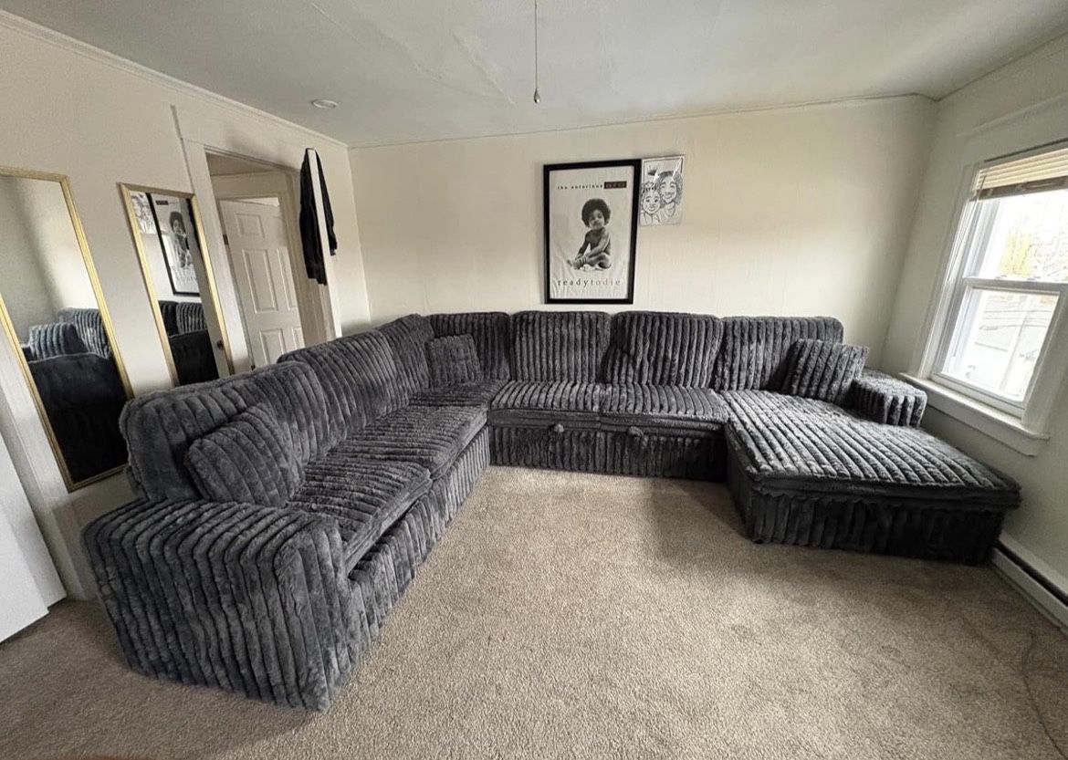 New Sectional Grey Corduroy Sleeper