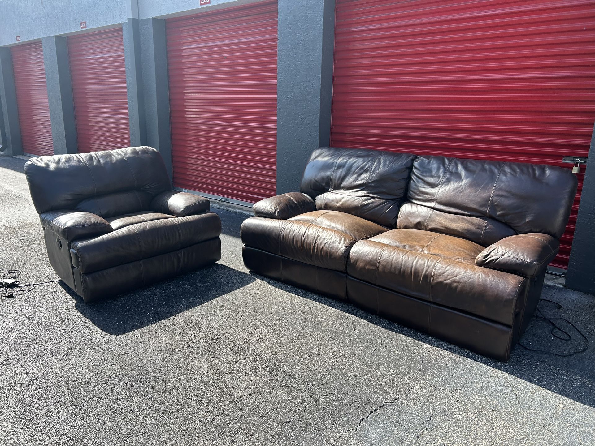 ELECTRIC RECLINER / BROWN LEATHER/ SOFA / COUCH AND ARMCHAIR/ DELIVERY NEGOTIABLE π