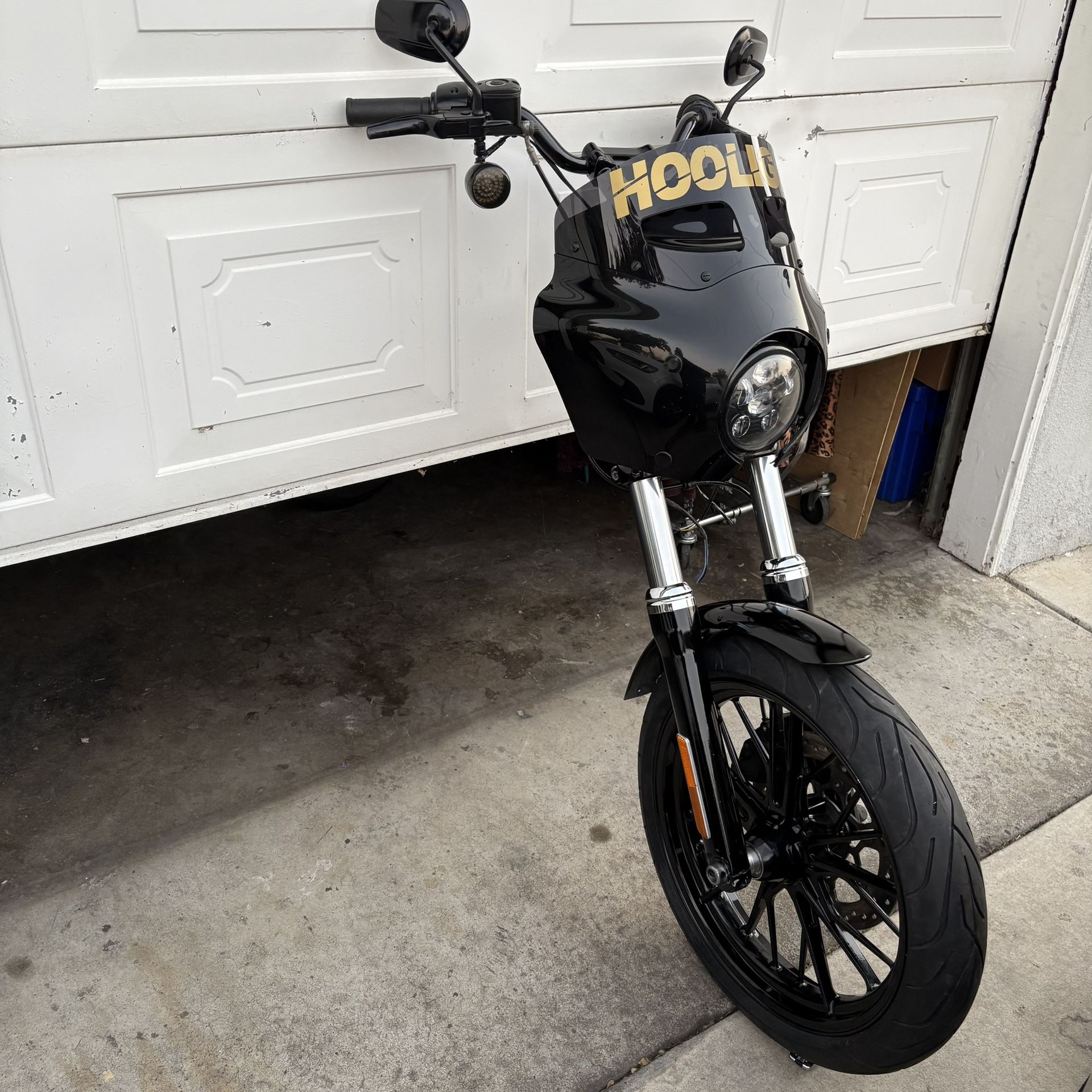 Selling a complete harley Dyna OEM front end that came out of 2017 dyna bike and will fit all other dynas and Softail bikes from 07-2017 this unit is complete with fairing a 19” mag wheel and everything else you see in the picture. No low ballers. Lowrider streetbob wide glide fatbob