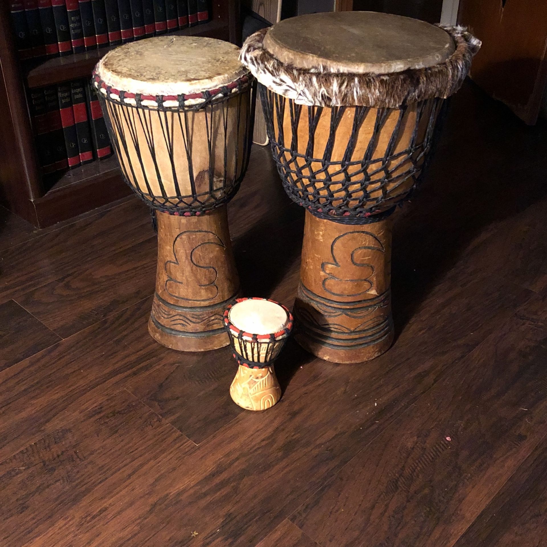 Two twin djembe drums! Small one is 200$ has a small cut in the head large one is 500$ great condition! Buy two get small drum free! I’d like to sell them as a set.
