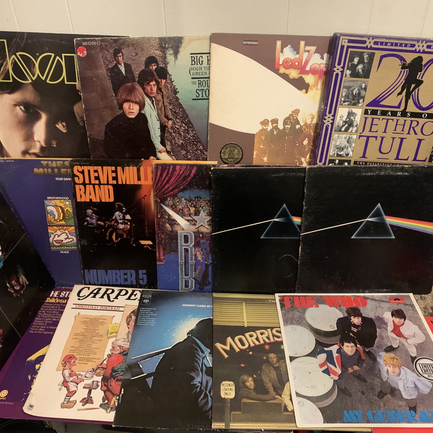 lot of vintage classic rock vinyl records albums Led Zeppelin, The Who, Jethro Tull, Van Halen, Pink Floyd, Rolling Stones, doors