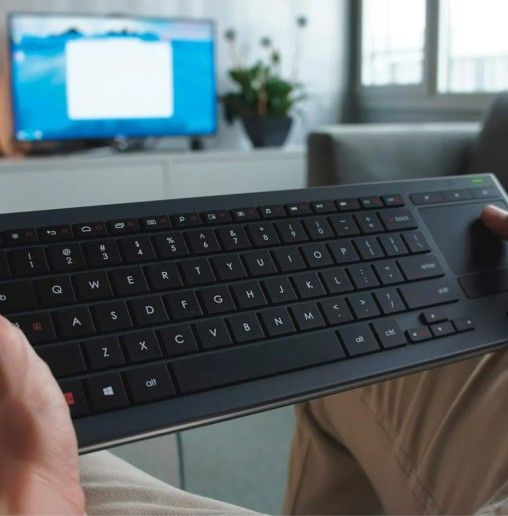 Logitech K830 Illuminated Livingroom Keyboard with Built-in Touchpad Windows Android. Original Box & Cables. Easy-access Media Keys and Shortcut Keys