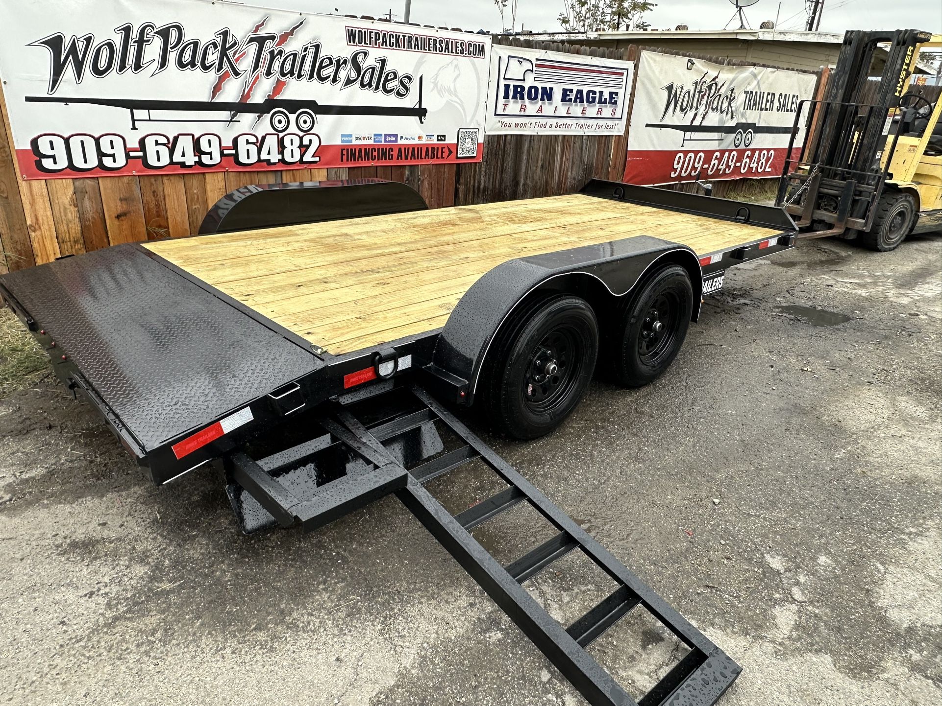 16x7 Awc car hauler - economy model 2’ diamond plated dovetail 4 welded d rings Stake pockets 2” bull dog connector 5’ ramps with storage on the side Low profile bumper Spare tire mount Treated wood 3500 lb axels 7,000 gvwr 83” in between the fenders Economy models 16x7 $4100 18x7 $4200 20x7 $4300