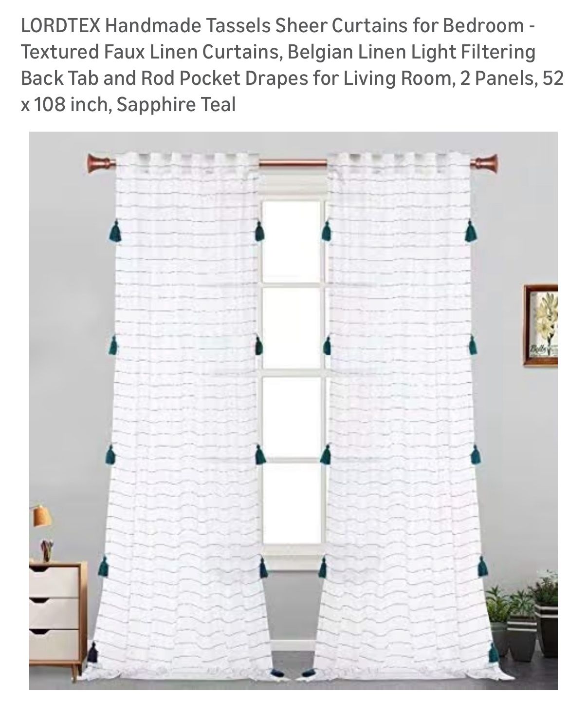 Sheer white curtains with teal tassel brand new still in the bag. 2 set of 2 (4 panels total)