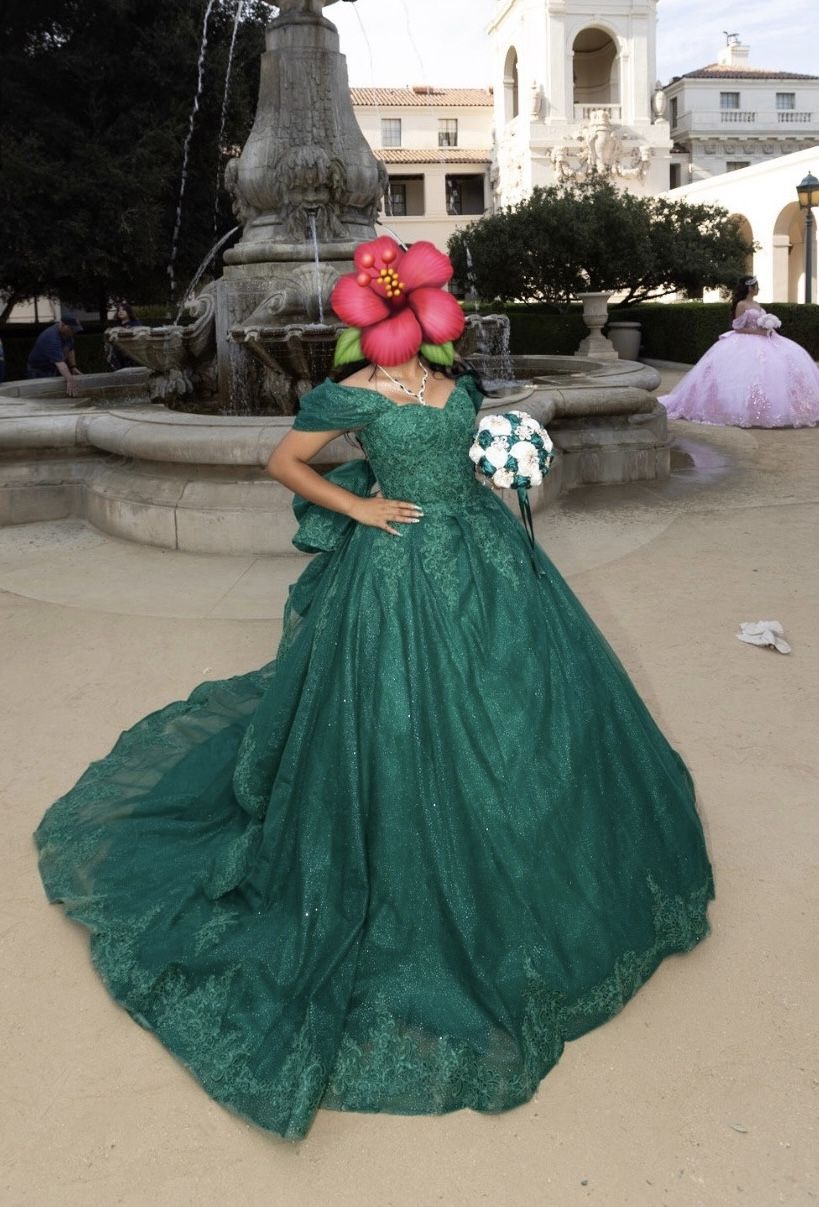 Green emerald quinceñera dress. Only used for photos. Size 8 99$ OBO