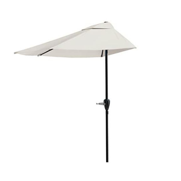 Half Umbrella Outdoor Patio Shade - 9 ft Patio Umbrella with Easy Crank - Small Canopy for Balcony, Table, or Deck by Pure Garden (Tan)