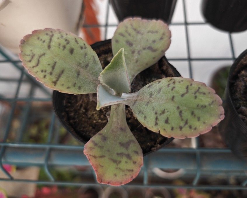 Kalanchoe gastonis-bonnieri, commonly known as Donkey Ears or Palm Beach Bells, is a fast-growing succulent from Madagascar known for its large, paddle-shaped leaves with maroon splotches and plantlets that form on the leaf edges. It's drought-tolerant, prefers full sun to partial shade, and is easily propagated by planting the leaf-tip plantlets, which eventually produce tall stalks with reddish-orange flowers before the mother plant declines.