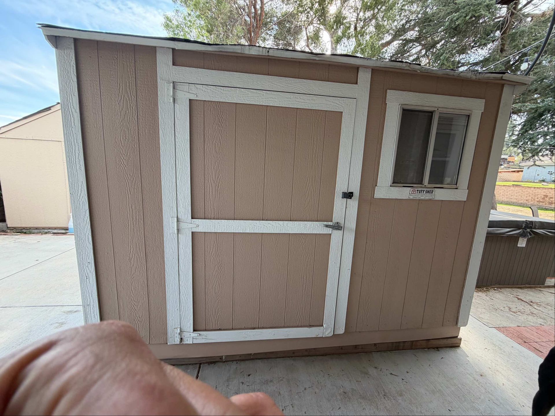 10’Wx10’D Very good condition Electrical present Insulation and drywall inside Built-in cabinets/cabinetry Missing trim on back window