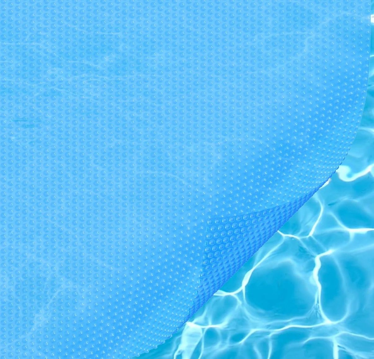 Blue 12' x 12' Square Solar Cover Free Solar Energy: This solar pool cover uses the sun’s power to raise water temperature by up to 15 Degrees Traps Heat: pool solar cover retains warmth long after the sun sets, helping to maintain consistent water temperature overnight Conserves Water: By reducing evaporation up to 95%, this swimming pool cover helps cut back on chemical use and the need for additional water. Debris Prevention: Stops leaves and debris from entering pool, reducing maintenance and keeping your swimming pool clean and clear Easy Installation: pool covers for above ground and inground pools have a durable design with extra overlap, making it simple to install (trim as needed).