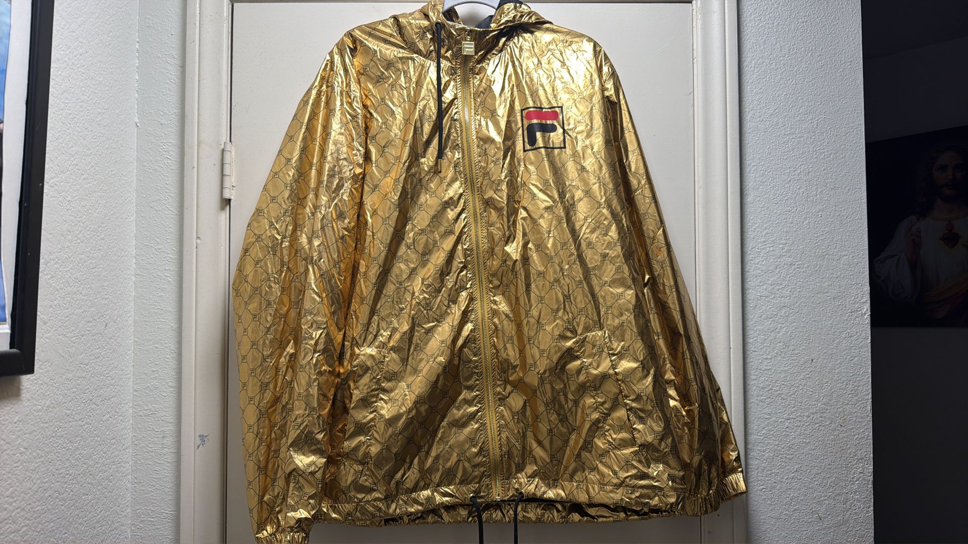 Men’s Fila, Windbreaker, Gold & Logo Pattern, Size 2XL