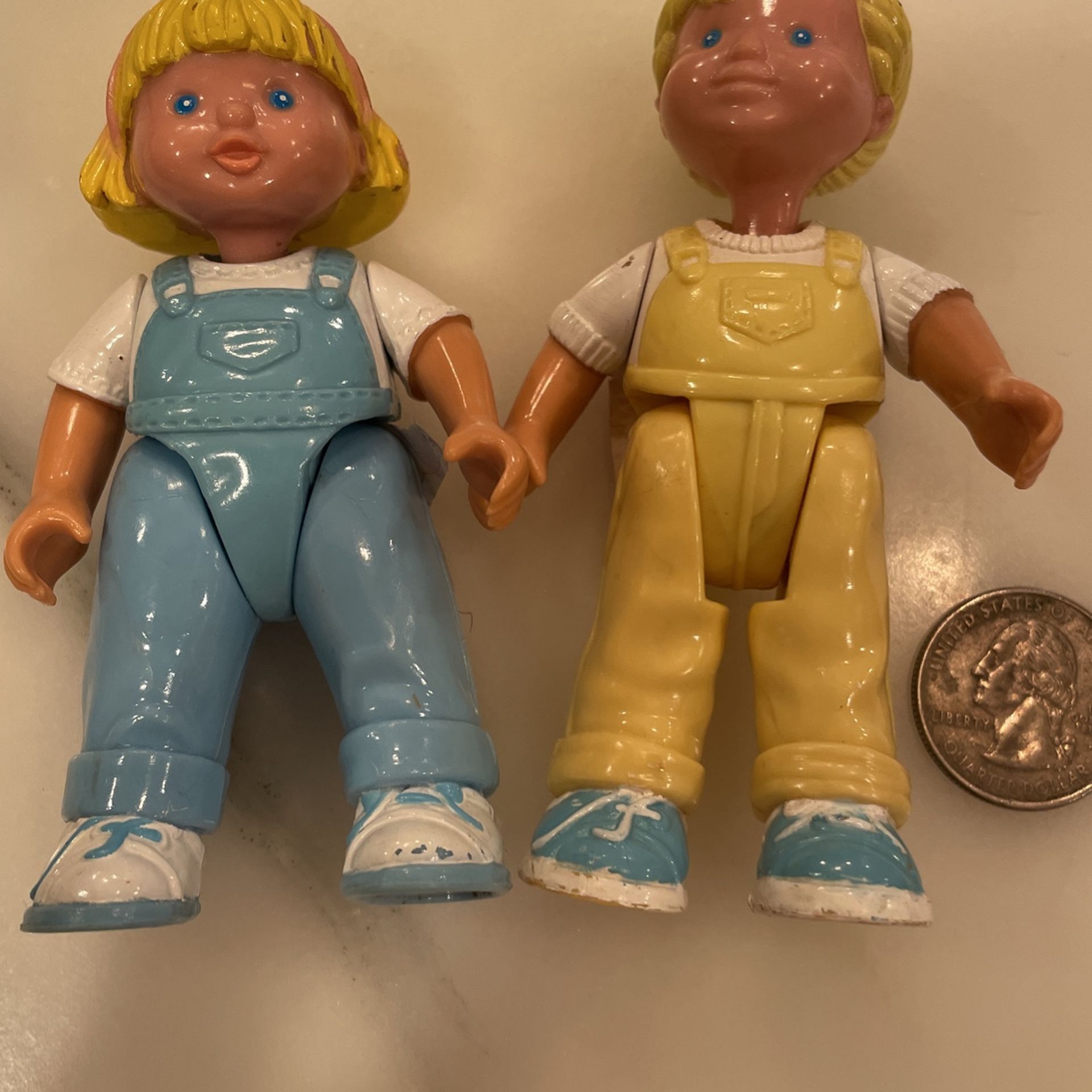 Vintage Fisher Price Loving Family Dollhouse Child Twins Sis/ Bro Blond 1993